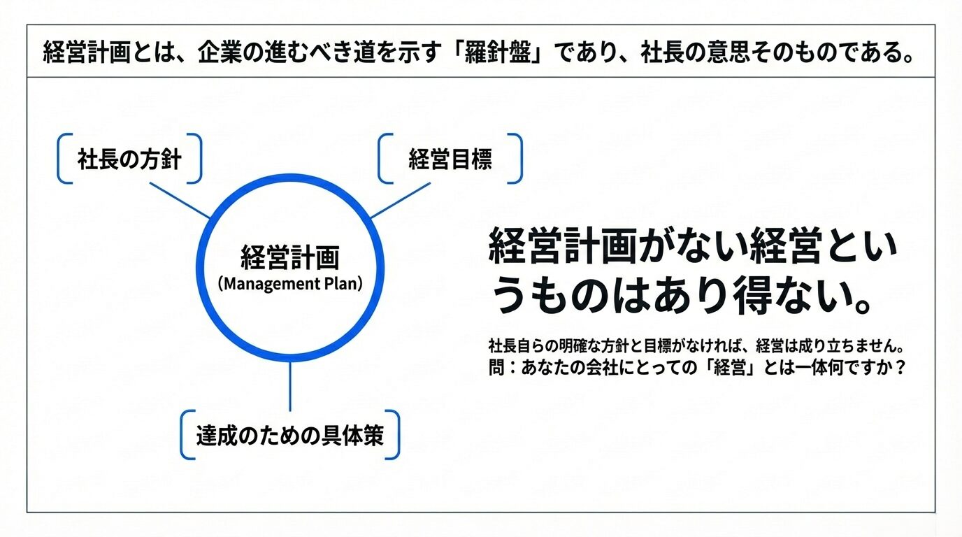 経営というものは、社長自らの明確な方針と目標がなければ成り立たないと私は考えています。その意味で、「経営計画がない経営というものはあり得ない」というのが私の基本的な考えになります。