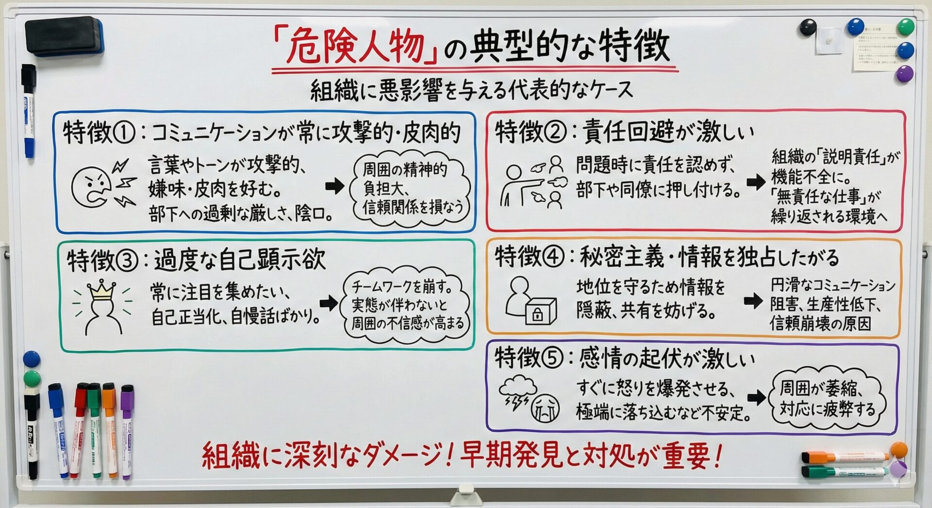 実際に私も、クライアント先でリーダーシップ研修やコーチングを実施することで危険人物を思しき社員の内省を促し、改善サポートしています。