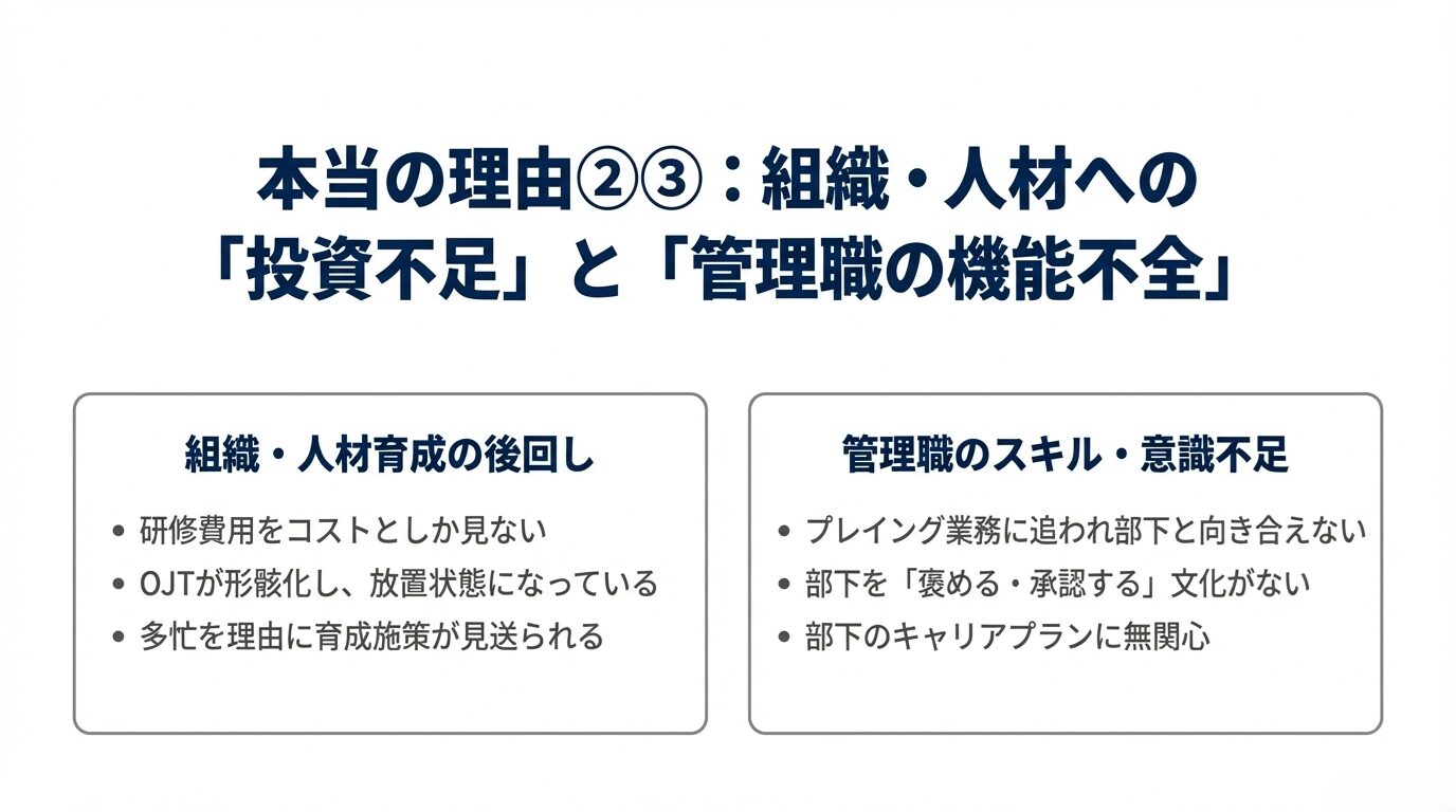 本当の理由②:組織開発・人材育成への投資が後回しになっている