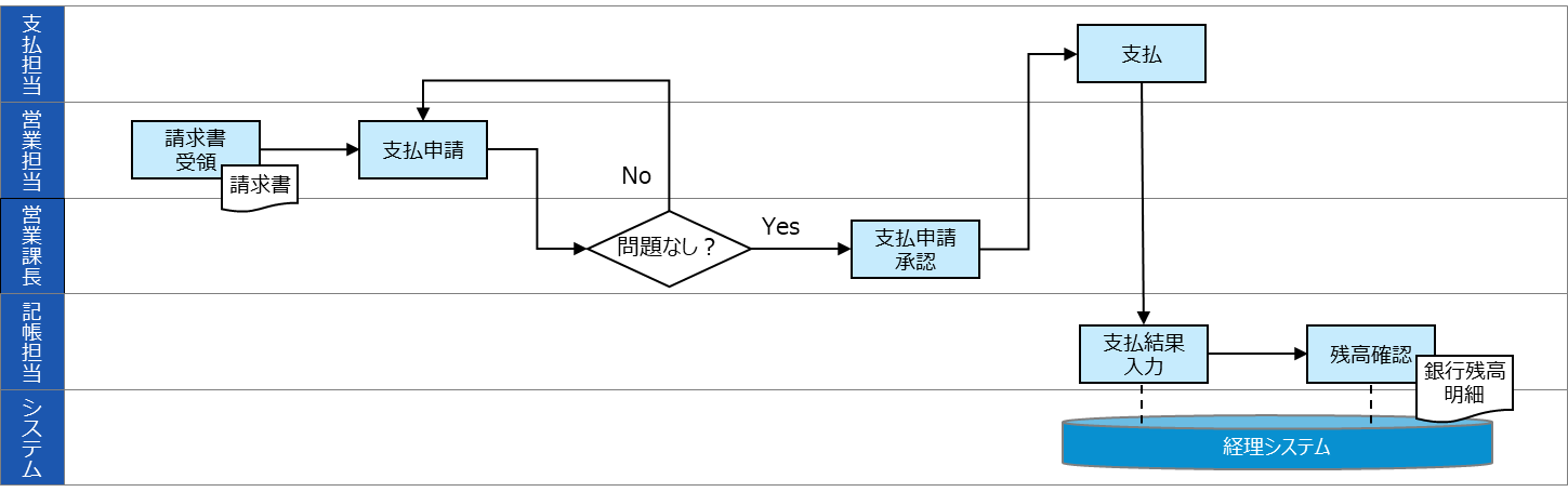 改めて業務フロー図のサンプルを以下に示しますので、7つのポイントと照らし合わせながら見てみてください。