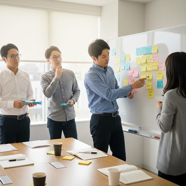 現場で最も効果が高い、ホワイトボードと付箋を使った実践的かつ具体的な進め方をご紹介します。