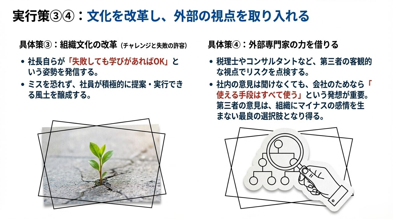 具体策③:組織文化の改革(チャレンジと失敗の許容)