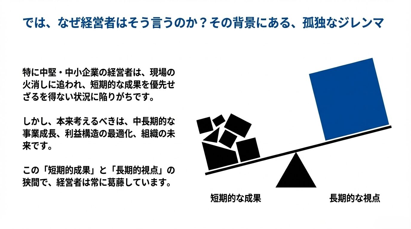 経営者の悩みは「短期的成果」と「長期的視点」のバランス