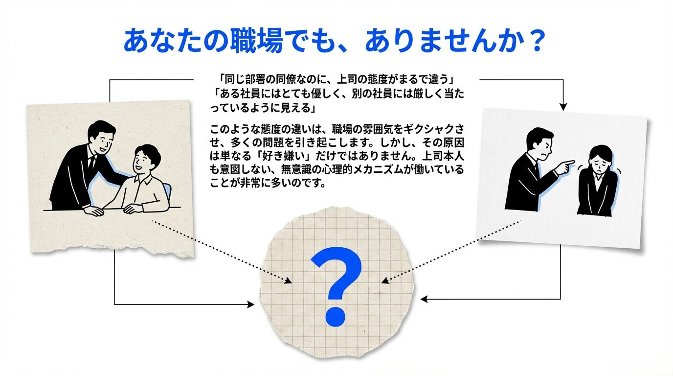 実は、そこには人間心理の自然な働きが潜んでいたり、評価制度の設計やコミュニケーション手法に問題があったりと、複合的な要因があります。上司本人も意図していない無意識の偏り(バイアス)が働いていることも決して珍しくありません。