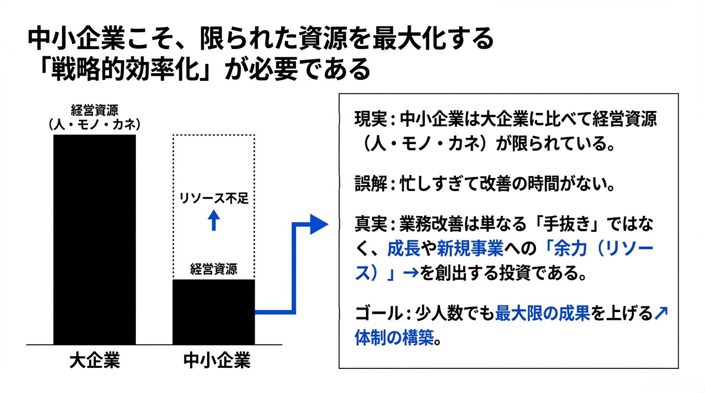 市場での競争が激しい中、業務改善によるコスト削減や顧客対応力の向上は、競合他社との差別化に直結します。 - 成長への準備