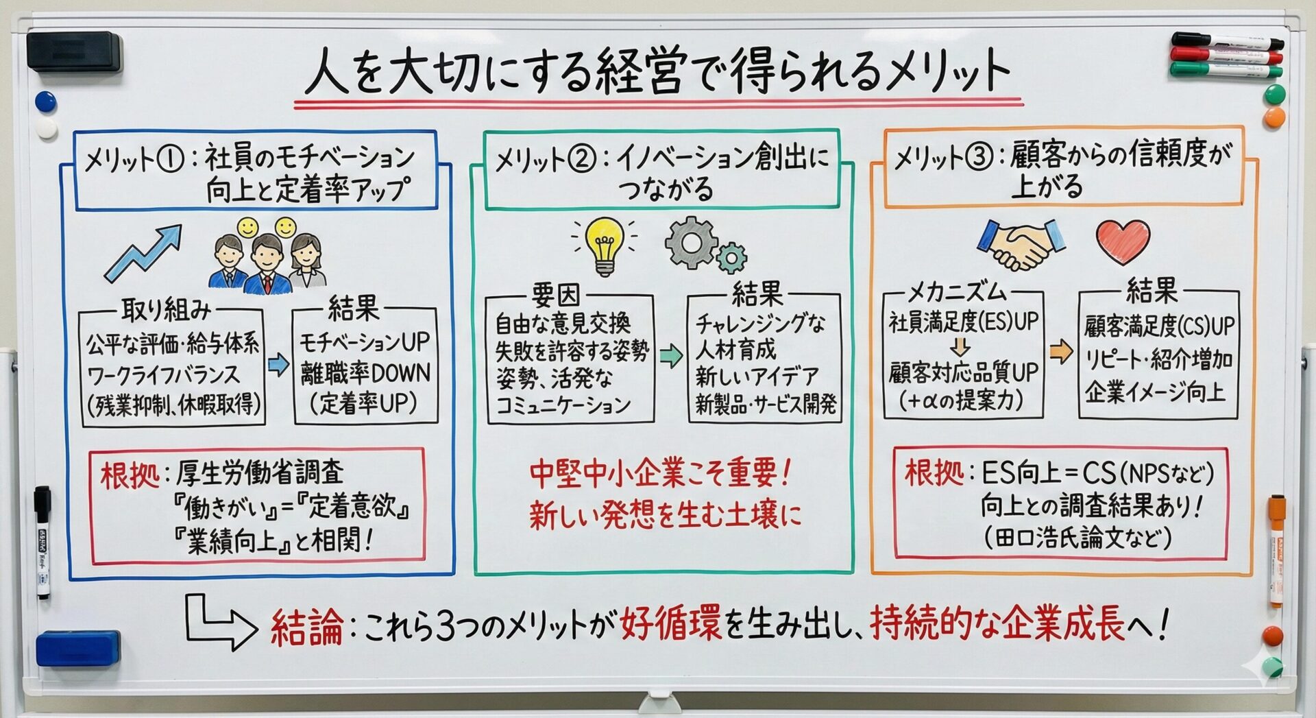 こうした環境の中で、人を大切にしない企業は否が応でも致命的なダメージを受けやすくなります。ひとたび人材が流出し始めると、残った社員のモチベーションも下がり、結果として業績に悪影響が及び、最悪の場合は立て直しが困難になるのです。