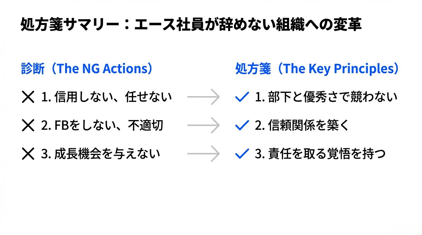 優秀な社員は、組織にとって非常に貴重な財産です。彼らが最大限の能力を発揮し、長く働き続けてもらうためには、上司が自身の役割を理解し、今回挙げられた「やってはいけない行動」を避け、部下との関わり方を見直すことが不可欠と言えるでしょう。