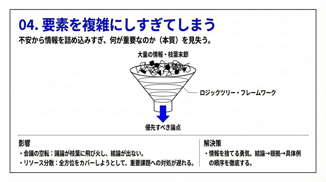 ・「抜け漏れがあってはいけない」という強迫観念から、過度に要素を加えてしまう