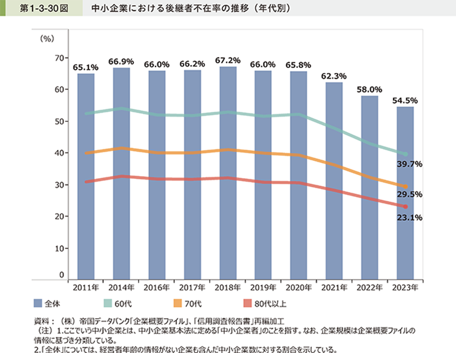 2024年版中小企業白書によると、日本の中小企業の54.5%が後継者不在に直面しています。国も事業承継・M&Aを強く推奨しており、これは経営者個人の問題ではなく、国全体の最重要課題となっています。やめたいと思った今こそ、未来のための戦略的な検討を始める絶好の機会と捉えましょう。