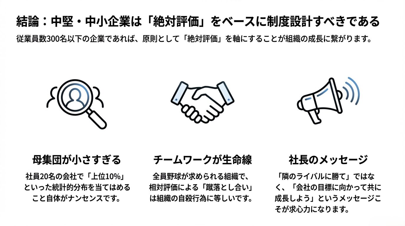 結論:中堅・中小企業は「絶対評価」をベースにせよ