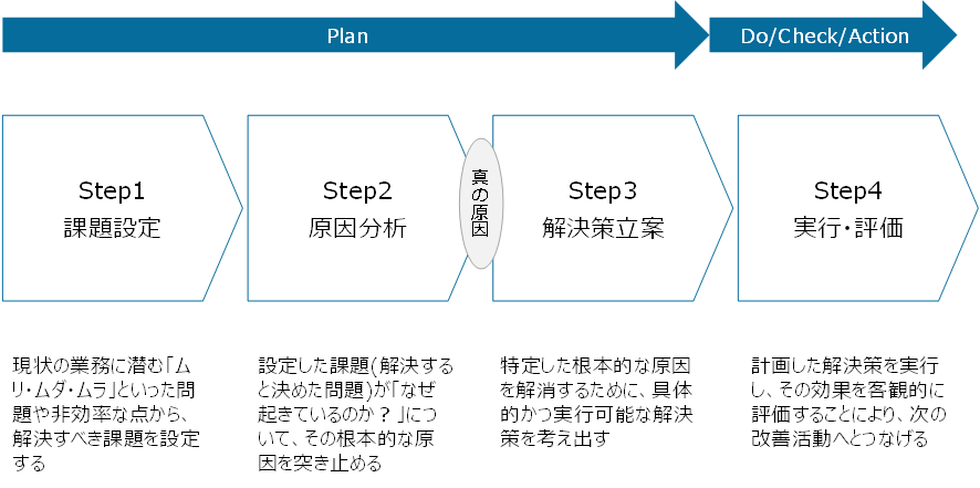 計画した解決策を実際に動かし、その効果を客観的に評価することで、次の改善活動へとつなげていきます。