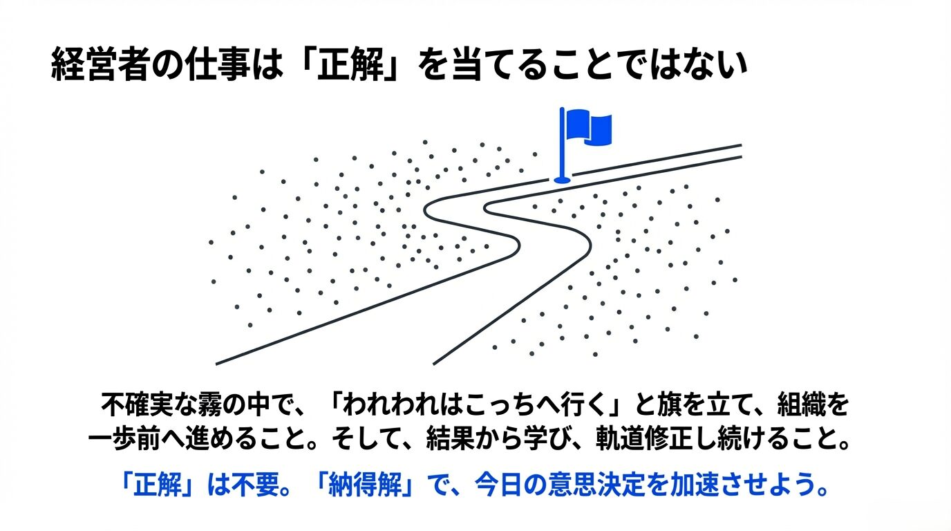 現代において、ビジネスに唯一絶対の「正解」は存在しません。正解を探せば探すほど、組織は止まり、現場は疲弊します。