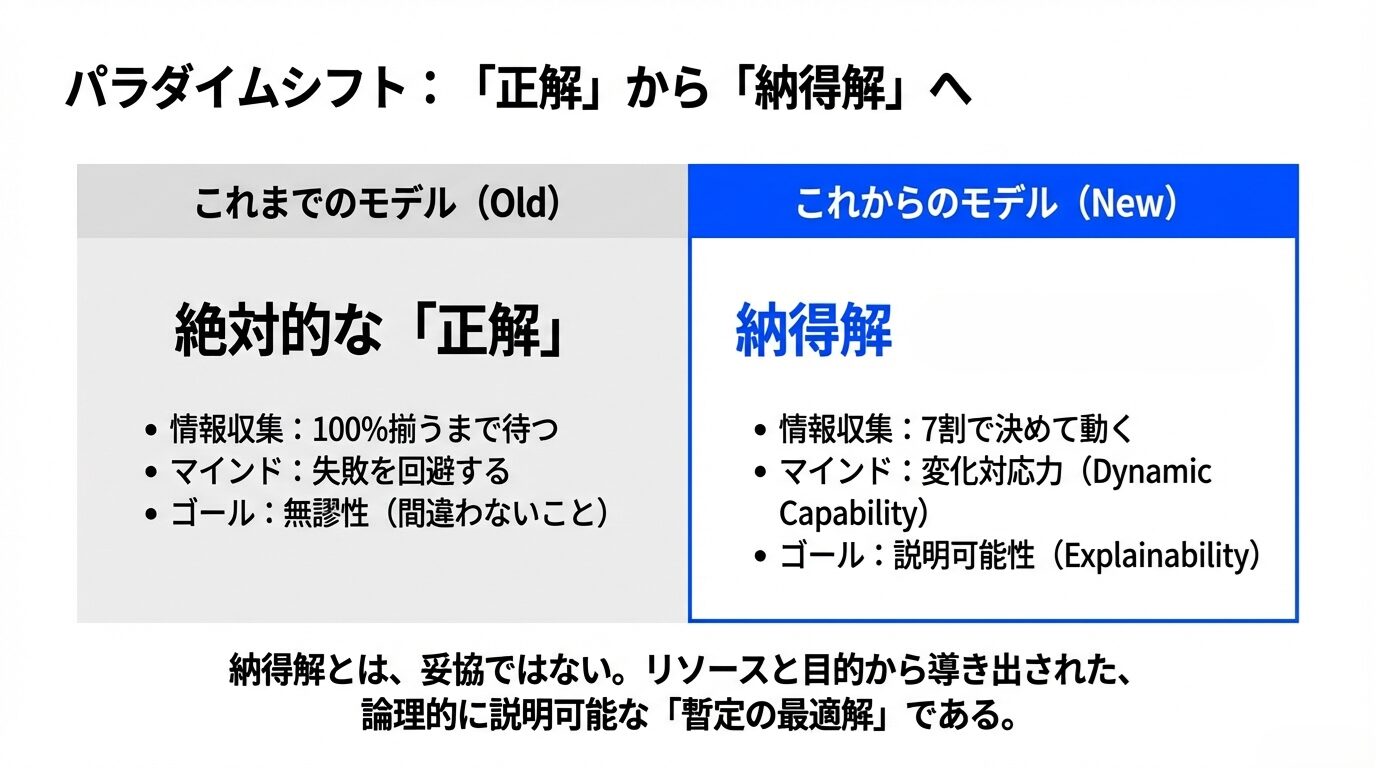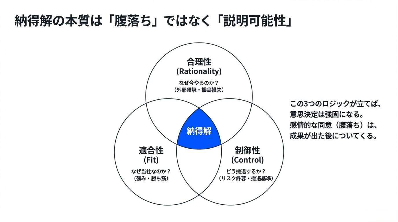 ここで言う「納得解」とは、単なる妥協案ではありません。私の定義はこうです。
