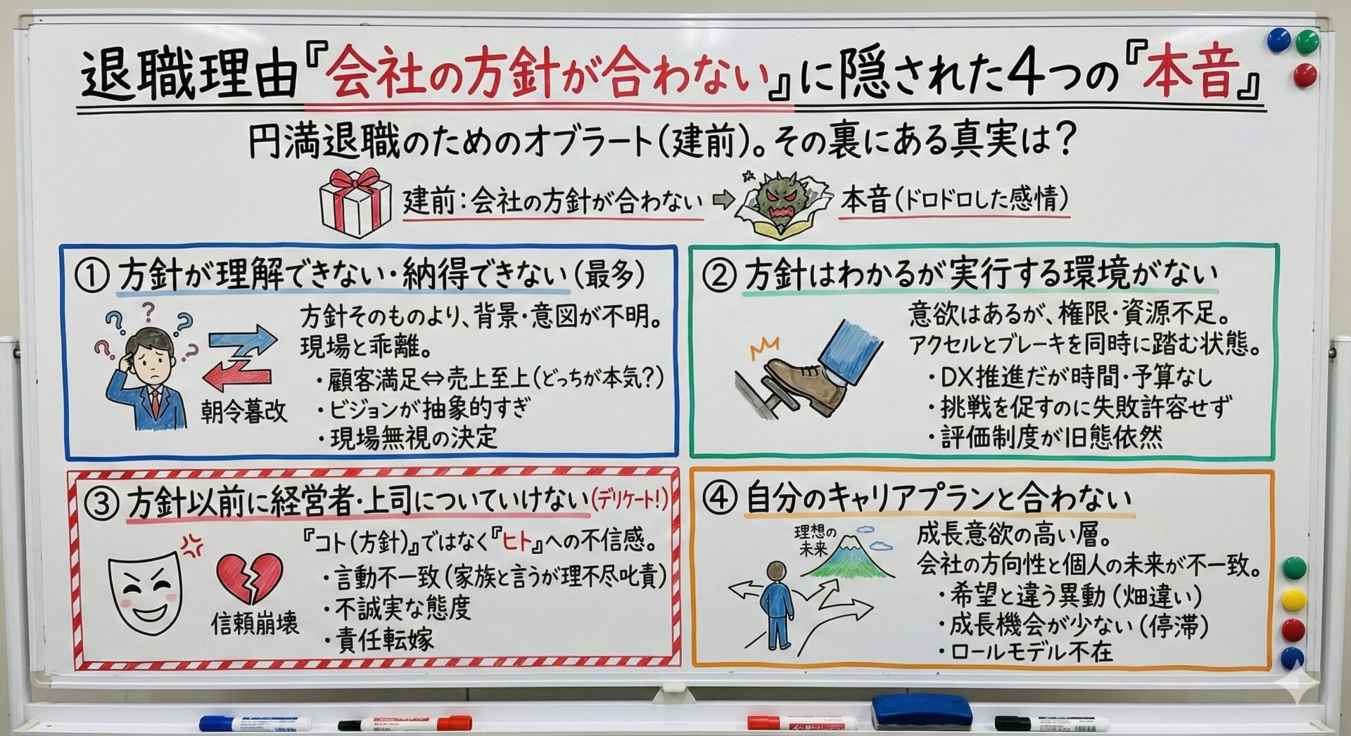 「会社の方針が合わない」という、たった一言の退職理由。しかし、その奥には、社員一人ひとりの「わかってほしい」という切実な願いが込められています。